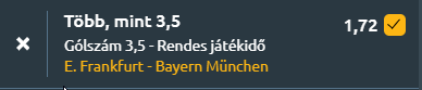 - Gólparádé várható a Bundesliga mai játéknapján, ahol a Frankfurt hazai körülmények között fogadja a Bayern München csapatát. Az Eintracht Frankfurt ellentmondásos formát mutatott az elmúlt hetekben: a Borussia Mönchengladbach ellen ugyan szenzációsan kezdtek, hiszen a 47. percre már 6-0-ra vezettek, de végül négy gólt is kaptak a hajrában, ami árnyalta a diadalt. A Bayern München félelmetes formában érkezik, hiszen Vincent Kompany irányítása alatt eddig mind a kilenc idei mérkőzésüket megnyerték. A Werder Bremen ellen 4-0-ra diadalmaskodtak legutóbb a Bundesligában, majd a héten a Bajnokok Ligájában is kiütéses, 5-1-es győzelmet arattak a Pafos ellen. A támadósoruk egyszerűen megállíthatatlan: sorozatban nyolc találkozón értek el legalább három gólt, miközben a ligában 29 nagy helyzetet dolgoztak ki öt forduló alatt! Minden adott egy gólzáporos találkozóhoz. A Frankfurt támadósora képes komoly veszélyt jelenteni, amit a Mönchengladbach elleni hatgólos kezdés is bizonyít, ugyanakkor a védelmük túlságosan ingatag, így a Bayern félelmetes támadói biztosan ki fogják használni a réseket. A bajorok nyolc mérkőzésen keresztül mindig legalább háromszor találtak be, miközben idegenben is rendre gólváltásos meccseket játszanak. Itt most legalább négy találat várható!