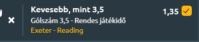 - A League One aktuális fordulójában szombat délután a St James Parkban csap össze Exeter City és Reading együttese. A hazaiak célja, hogy egymás után második győzelmüket arassák, míg a vendégek a Berkshire-ben mutatott jó formájukat szeretnék idegenben is kamatoztatni. A találkozó esélyeit tekintve Reading tűnik valamivel stabilabbnak, különösen a keret összetételét és a hiányzókat figyelembe véve. Exeter két kulcsemberét is nélkülözni kénytelen, ami jelentősen csökkenti támadóerejét, különösen hazai pályán, ahol amúgy is gyenge formát mutatott az elmúlt hetekben. A vendégek ugyan idegenben szenvednek, de a St James Parkban uralkodó hazai gyengeség miatt most jó esélyük van a pontszerzésre, akár a győzelemre is. Mindezek alapján a mérkőzés várhatóan szoros és kevés gólt hozó csata lesz. A hiányzók, a hazaiak gólképtelensége, valamint a vendégek idegenbeli óvatossága mind azt vetítik előre, hogy a találkozón kevesebb mint 3,5 gól születik.