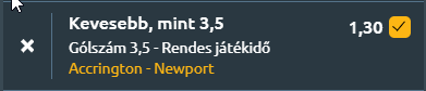 - A League Two alsóházi rangadóján szombaton a kiesés elől menekülő Newport County látogat az Accrington Stanley otthonába. Mindkét csapat számára kulcsfontosságú lehet ez az összecsapás, hiszen a tabella végén tanyáznak, és minden megszerzett pont létfontosságú lehet a bennmaradásért vívott harcban. Az Accrington Stanley szezonkezdetét hat nyeretlen bajnoki mérkőzés jellemezte, ám szeptemberben két egymást követő győzelemmel – a Colchester United és az MK Dons ellen – úgy tűnt, hogy John Doolan együttese végre megtalálta a helyes utat. A fellángolás azonban rövid életűnek bizonyult: azóta három vereséget szenvedtek el zsinórban, miközben hét gólt kaptak és csupán egyet szereztek. A vendég Newport County szintén nehéz időszakon van túl. A szezon első két mérkőzésén négy pontot gyűjtöttek, ám ezt követően hatmeccses vereségsorozatba kerültek, amelyet csupán egy Tranmere Rovers elleni döntetlen szakított meg szeptember közepén. A két csapat formája, a hazaiak gólképtelensége és a vendégek küzdelmes, de nem túl termékeny támadójátéka alapján indokolt a kevesebb mint 3,5 gólra tett fogadás. A mérkőzés inkább taktikai harcot ígér, mintsem gólzáport.