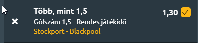 - A League One szombati játéknapján a Stockport County hazai pályán fogadja a súlyos gondokkal küzdő Blackpool együttesét. A Stockport County az előző szezonban lemaradt a rájátszásról, ám az új idényt biztatóan kezdték, és az első két hónap során a középmezőny és a playoff-zóna határán mozogtak. Dave Challinor csapata jelenleg lendületben van: négy mérkőzés óta veretlenek, ez idő alatt nyolc pontot gyűjtöttek. A Blackpool komoly válságban van: a csapat mindössze nyolc pontot gyűjtött tizenegy bajnokin, és az AFC Wimbledon elleni hetedik vereség után a klubvezetés menesztette Steve Bruce vezetőedzőt. Bár a 23. helyről nézve még csak négy pont választja el őket a 16. pozíciótól, a kilenc tétmeccsből mindössze két győzelem és az idegenbeli teljes csőd. A Stockport lendületben van, és az elmúlt hetekben meggyőző teljesítményt nyújtott, különösen idegenben. A Blackpool ugyan új felállásban léphet pályára, ami némi frissességet hozhat, de az eddigi idegenbeli szereplésük és a vezetőedző hiánya komoly hátrányt jelent. A hazaiak támadójátéka stabil, míg a vendégek védelme sebezhető, így minden adott ahhoz, hogy a mérkőzésen több mint 1,5 gól szülessen.