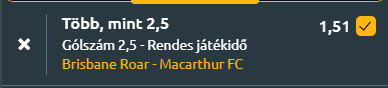 - A Brisbane Roar és a Macarthur találkozik az ausztrál A- Liga mai játéknapján. A mérkőzésen két, támadófocit előnyben részesítő együttes találkozik, ami ígéretes, gólokban gazdag összecsapást vetít előre Brisbane-ben. A Brisbane Roar kiegyensúlyozott formában várja a találkozót, hiszen az elmúlt öt mérkőzéséből hármat megnyert, egyszer kikapott és egy döntetlent játszott. A csapat ebben az időszakban átlagosan 1,6 gólt szerzett és 1,2-t kapott, a legutóbbi tétmérkőzésükön a Central Coast Mariners otthonában 2–1-re győztek. A bajnokságban jelenleg a 7. helyen állnak, és hazai pályán különösen veszélyesek, hiszen támadójátékuk lendületes, és gyakran képesek helyzeteket kialakítani. Az elmúlt tíz mérkőzésükből nyolcon mindkét fél betalált, ami jól jelzi, hogy nyílt, támadó stílusú futballt játszanak. A Macarthur a tabella 11. helyéről várja a mérkőzést, és bár az eredményei kissé hullámzóak voltak, támadójátéka továbbra is veszélyes. Az elmúlt öt találkozón egyszer győzött, háromszor vereséget szenvedett, egyszer pedig döntetlent ért el. Ezalatt átlagosan 1,6 gólt szerzett és 1,8-at kapott, tehát szinte minden mérkőzésén gólgazdag összecsapásokat játszott. Legutóbb magabiztos, 3–0-s sikert aratott a Beijing Guoan ellen a nemzetközi kupában. Mindkét csapat rendszeresen betalál, ugyanakkor védelmeik sebezhetők, a Brisbane az utóbbi időben szinte minden meccsén gólt kapott, a Macarthur pedig meccsenként közel két gólt engedélyez ellenfeleinek. Ma is egy lendületes, legalább háromgólos összecsapásra lehet számítani Brisbane-ben.