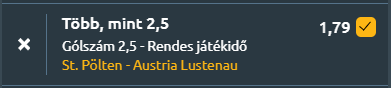 - Rangadót rendeznek az osztrák 2. Ligában, ahol a listavezető St. Pölten hazai pályán, az NV Arenában fogadja a tabella negyedik helyén álló Austria Lustenaut. Mindkét csapat kiváló formában érkezik, így látványos, gólokban gazdag mérkőzésre számíthatunk. A St. Pölten remek szezont fut, hiszen kilenc mérkőzéséből nyolcat megnyert, egyet pedig döntetlenre hozott, így veretlenül vezeti a bajnokságot. A csapat támadójátéka különösen figyelemre méltó: meccsenként átlagosan 2,56 gólt szerez, miközben mindössze 0,78 gólt kap. Legutóbbi mérkőzésén idegenben 2–1-re győzte le az Austria Klagenfurtot, ezzel tovább erősítve listavezető pozícióját. Az Austria Lustenau szintén stabilan teljesít, és jelenleg a 4. helyen áll a tabellán. A szezonban eddig négy győzelem, egy vereség és négy döntetlen a mérlege. A csapat meccsenként átlagosan 1,78 gólt szerez, miközben 1,22-t kap, tehát szoros, de gólgazdag találkozókat játszik. Mindkét csapat támadó felfogásban játszik, és statisztikáik is ezt erősítik. A St. Pölten rendkívül eredményes elöl, hiszen hazai meccseiken is bőven két gól felett termel, míg az Austria Lustenau legutóbbi mérkőzésein szintén többgólos találatok születtek. Várhatóan három gól potyog a meccsen!