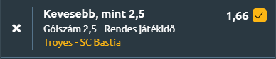 - A francia másodosztály kilencedik fordulójában a listavezető Troyes hazai pályán fogadja az utolsó előtti helyen álló Bastia csapatát. A tabella két ellentétes végén elhelyezkedő együttes találkozóján a hazaiak egyértelmű esélyesnek számítanak, ugyanakkor a statisztikák alapján zárt, kevés gólt hozó mérkőzésre lehet számítani. A Troyes remek formában van, hiszen az idei Ligue 2-szezonban eddig hat győzelmet, egy vereséget és két döntetlent könyvelhetett el, ezzel az első helyen áll a bajnokságban. A csapat átlagosan 2,11 gólt szerez mérkőzésenként, miközben mindössze 1 gólt kap, ami a támadóhatékonyság és a stabil védekezés egyensúlyát mutatja. A Bastia számára eddig küzdelmesen alakul a szezon, hiszen kilenc fordulót követően még nem tudott mérkőzést nyerni. A korzikaiak öt vereséget és négy döntetlent értek el, és ezzel a 18. helyen, tehát a kiesőzónában állnak. A gólstatisztikájuk elég gyenge: meccsenként mindössze 0,44 gólt szereznek, miközben 1,22-t kapnak, ami a támadójáték hatástalanságát mutatja. Legutóbb 0–0-s döntetlent játszottak a Dunkerque ellen, ami ugyan védekezésben stabilitást mutat, de a támadásokban továbbra sem sikerült áttörést elérniük. A Troyes ugyan magabiztos és gólerős csapat, de ellenfele várhatóan mélyen védekezik majd, hogy megfékezze a listavezetőt. A Bastia idei szezonban mutatott 0,44-es gólátlaga és gyenge támadójátéka szintén csökkenti annak esélyét, hogy több találat születik. A két csapat legutóbbi egymás elleni meccsein is inkább a visszafogottabb eredmények domináltak, ma is kevés találat várható!