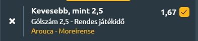 - Két hullámzó formában lévő csapat csap össze ezen a hétvégén, amikor az Arouca hazai pályán fogadja a Moreirensét. Mindkét együttes számára fontos lenne a pontszerzés, hiszen a szezon ezen szakaszában egyik fél sem mutat stabil teljesítményt – ez pedig könnyen vezethet egy nyílt, gólokban gazdag mérkőzéshez. Az Arouca a bajnokság egyik leggyengébb védelmével rendelkezik, hiszen eddig 24 gólt kapott, ami a mezőny legrosszabb mutatója. A védekezés mellett a támadójáték is ingadozó, mindössze 10 szerzett gól áll a nevük mellett, mégis képesek voltak több meccsen is felpörögni támadásban, különösen hazai környezetben, ahol például az AVS ellen 3–1-es győzelmet arattak. A Moreirense szintén támadó felfogású, de védekezésben sebezhető gárda: 13–13-as gólarányuk jól mutatja, hogy meccseiken mindkét oldalon rendszeresen születnek találatok. Bár a szezon elején remekül kezdtek, az utóbbi négy bajnokin három vereséget szenvedtek, és a Portugál Kupából is kiestek, így most egy nyílt, küzdelmes mérkőzésben próbálják visszanyerni formájukat. Mindezek alapján reális a várakozás, hogy legalább három gól születik ezen a találkozón