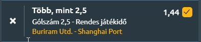 - Az AFC Champions League Elite sorozatban a Buriram United és a Shanghai Port csap össze, ahol mindkét gárda számára kulcsfontosságú lehet a győzelem a továbbjutási esélyek életben tartásához. Mindkét együttes hajlamos a nyílt, támadó felfogású játékra, a Buriram legutóbbi tíz meccséből kilenc, a Shanghai Portéiból pedig nyolc végződött legalább három góllal. A Buriram a legutóbbi öt mérkőzésén átlagosan 1,4 gólt szerzett és 1,8-at kapott, míg a Shanghai Port ugyanebben az időszakban 1,8 gólt lőtt és szintén 1,8-at kapott, ami szinte garantálja a nyílt küzdelmet. A két csapat korábbi összecsapásán 3–0-s kínai győzelem született, így a hazaiak most revansra készülnek, ami tovább fokozhatja a támadójáték intenzitását. Mindezek alapján várhatóan több mint 2,5 gól születik.