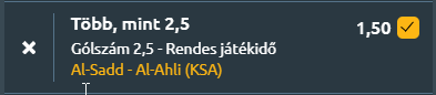- Az AFC Champions League Elite sorozat egyik legérdekesebb párharcát hozza az Al Sadd és az Al Ahli összecsapása Dohában, ahol két támadó szellemű csapat méri össze erejét. Komoly esély van arra, hogy a találkozón több mint 2,5 gól születik, ami a csapatok közelmúltbeli formáját tekintve reálisnak tűnik. Az Al Sadd legutóbbi bajnokiján 5–1-re győzte le az Al Rayyant, ami bizonyítja, hogy képesek rendkívül hatékony támadójátékra, ugyanakkor védekezésben sebezhetők. Az Al Ahli eközben 1–1-es döntetlent játszott az Al Riyadh ellen, de az idei nemzetközi szezonban átlagosan 3,33 gólt szerez meccsenként, miközben 1,33-at kap, így rendre gólgazdag találkozókat játszik. A két csapat egymás elleni mérlege is ezt támasztja alá: az utóbbi öt összecsapásukon mindkét fél rendszeresen betalált, Al Sadd átlagosan 1,4, Al Ahli pedig 1,8 gólt szerzett mérkőzésenként, a legutóbbi találkozón pedig 3–1-es Al Ahli-győzelem született. Mindezek alapján várható, hogy ezúttal is nyílt, támadó felfogású játékot láthatunk, ahol a formák, statisztikák és a támadóhatékonyság egyaránt több mint 2,5 gól irányába mutatnak.