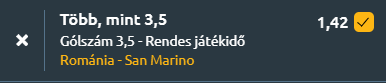 - Románia kedden este a Stadionul Ilie Oanában fogadja San Marinót. A hazaiak hét csoportmeccsen már 12 gólt szereztek, miközben védekezésük ingadozó, hiszen az utóbbi tíz mérkőzésükből mindössze kettőt hoztak le kapott gól nélkül. A bosnyákok elleni 3–1-es vereség ugyan megtörte a lendületet, de Mircea Lucescu együttese hazai pályán kifejezetten erős, sorozatban harmadik győzelmükre készülnek, és az utóbbi kilenc hazai meccsből hetet megnyertek. San Marino ezzel szemben hosszú vereségszériában van, tíz mérkőzés óta nem tudott nyerni, ráadásul 61 világbajnoki selejtezős kudarcot számlál sorozatban. A vendégek az utóbbi öt találkozóból négyszer gólt sem tudtak szerezni, és 15 meccs óta nem tartották érintetlenül a kapujukat, miközben idegenben 17 fellépésből 16-szor kikaptak, 11 alkalommal legalább két gólt kapva. A két válogatott eddigi négy összecsapását Románia nyerte, köztük a legutóbbi 5–1-es sikerrel, ami jól mutatja az erőviszonyokat. Mindezek alapján a hazaiak támadói számára ideális lehetőség kínálkozik, hogy több gólt szerezzenek, és minden jel arra mutat, hogy a találkozó bőven 3,5 gól fölé mehet.