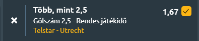 - FC Utrecht vasárnapi telstari vendégjátéka fontos mérföldkő lehet a vendégek számára, hiszen egy újabb győzelemmel ismét közelebb kerülhetnek a dobogós helyekhez, míg a hazaiak a kiesés elleni küzdelemben próbálnak életjeleket adni magukról. Az Utrecht az előző idény negyedik helyezettjeként idén is az európai szereplés megerősítésére törekszik, miközben az Eredivisie és az Európa Liga terhei egyszerre nehezednek Ron Jans csapatára. Bár 12 bajnokin öt vereséget is elszenvedett az együttes, jelenleg az ötödik helyen áll, és mindössze öt pont választja el a harmadik pozíciótól. A NEC Nijmegen és az Ajax elleni győzelmekkel sikerült visszakapaszkodniuk, majd a Porto ellen elért döntetlennel egy hárommeccses veretlenségi szériát is felépítettek. Ugyanakkor az augusztus végi utolsó idegenbeli siker óta öt találkozón keresztül nem tudtak nyerni vendégként, és jelenleg a bajnokság ötödik legrosszabb idegenbeli mérlegével rendelkeznek. Telstar a 17. helyen áll, és már öt bajnoki óta nem tudott győzni, de hazai pályán akadtak támadásban biztató jelek. Egyetlen hazai sikerüket a Go Ahead Eagles elleni 4–2-es diadal jelentette, és hat otthoni meccsen 11 gólt is szereztek. Bár a frissen feljutó csapat mindössze öt pontot gyűjtött saját közönsége előtt, még így is csupán három egységre vannak a 14. helytől. A Twente elleni gól nélküli döntetlen és a Lisse 5–0-s kiütése a kupában mutatja, hogy a Telstar képes erőteljes támadóteljesítményre, de a bajnoki formát stabilizálniuk kellene ahhoz, hogy elkerüljék a kiesés veszélyét. Az Utrecht friss győzelmei, valamint a Telstar hazai pályán szerzett magas gólszámai egyaránt támadó felfogású mérkőzést vetítenek előre. A vendégek kiegyensúlyozottabb erőnléti állapota és a hazaiak gólerős, de ingadozó teljesítménye együtt egy olyan találkozót ígér, ahol könnyen kialakulhat egy nyílt játék, és ennek megfelelően bőven eshet 2,5 gólnál több.