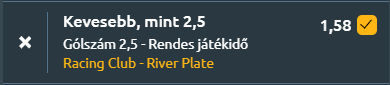 - Még mindig Argentína a helyszín, a bajnokság is ugyanaz, de most a Racing Club és a River Plate rangadója érkezik, ahol a tabella élén álló riválisok feszülnek egymásnak Avellanedában. A Racing az utóbbi tíz meccséből kilencszer, River pedig hétszer zárt 2,5 gól alatt, és mindkét csapat utolsó fellépésén nullára hozta a védekezést (Racing 0-1, River 0-0). A közelmúltbeli egymás elleni mérleg szintén feszes találkozókat mutat, hiszen az utolsó meccs 0-1-re végződött, az utolsó öt összecsapásból pedig három River-siker és egy Racing-győzelem született, miközben mindkét fél átlagos gólszáma alacsonyan maradt (Racing 1.0, River 1.4). A bajnokságban is stabil, szervezett védekezést produkálnak: Racing 0.91-es, River 0.74-es kapott gólátlaga és a legutóbbi ötmeccses formájuk – ahol mindkét csapat mindössze 0.4 gólt szerzett átlagban – egyértelműen alacsony intenzitású támadójátékot vetít előre. A két csapat formája, a sorozatos underes mérkőzések, a visszafogott gólátlagok és a stabil védekezés összessége alapján nagy valószínűséggel ezúttal is 2,5 gól alatti találkozóra van kilátás.