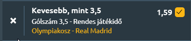 - És akkor két meccs az európai Bajnokok Ligájából!Az Olympiakosz Athénban fogadja a Real Madrid alakulatát! A görög csapat még nem nyert a Bajnokok Ligája csoportkörében, két döntetlent és két vereséget könyvelhet el, hazai pályán 0-0-s döntetlent ért el a Pafos FC ellen és 1-1-es döntetlent játszott a PSV Eindhoven ellen. A hazai bajnokságban viszont erős formát mutat, az utolsó hat mérkőzéséből ötöt megnyert, és jelenleg ötmeccses győzelmi sorozatban van a görög Super League-ben. A Real Madrid 4 csoportmérkőzés után 9 ponttal a csoport élmezőnyében áll, három győzelmet aratott a négy lehetségesből, közte szoros győzelmeket, például 1-0-ra nyert a Juventus ellen és 2-1-re az Olympique Marseille ellen, egyetlen vereségük 1-0-s volt Liverpool ellen idegenben. A három Real Madrid Bajnokok Ligája-mérkőzés átlagosan kevesebb, mint 2,0 gólt hozott, míg Olympiacos hazai meccsei szintén 2,5 gól alatt zárultak. Mivel mindkét csapat korábbi Bajnokok Ligája-mérkőzésein alacsony gólátlag mutatkozott, és a hazai, illetve idegenbeli eredmények is ezt támasztják alá, várhatóan ma is kevesebb, mint 2,5 gól születik.