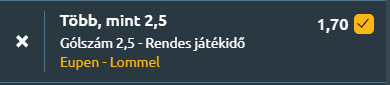 - A Stadion am Kehrweg ad otthont a Challenger Pro League izgalmasnak ígérkező összecsapásának, ahol a KAS Eupen és a Lommel SK feszül egymásnak egy olyan mérkőzésen, amelynek előjelei kifejezetten gólgazdag játékra utalnak. Nézzük ezeket az előjeleket! A két csapat idei teljesítménye, egymás elleni mérlege és legutóbbi formája egyaránt olyan képet fest, amely alapján nyílt, támadó futballra lehet számítani. A KAS Eupen 5 győzelemmel, 3 vereséggel és 5 döntetlennel áll, 1.46-os gólátlaggal és 1.08-as kapottgól-átlaggal, miközben az utóbbi öt meccsén 1.2 gólt szerzett és 1.4-et kapott. Legutóbbi találkozóján 1–1-re végzett az SK Beveren ellen. A Lommel SK szintén 5 győzelemmel, 4 vereséggel és 5 döntetlennel rendelkezik, és kimagasló, 2 gólos meccsenkénti átlaggal támad, ugyanakkor 1.64-es kapottgól-átlagával is kifejezetten nyílt mérkőzéseket játszik. Utóbbi öt találkozóján 2.2-s gólátlagot hozott támadásban, miközben 2.8 gólt kapott, legutóbb pedig 4–2-re kapott ki a KV Kortrijktól. A csapatok gólátlagai, formája, egymás elleni eredményei és a statisztikai esélyek egyértelműen abba az irányba mutatnak, hogy a találkozón jó eséllyel 2,5 gólnál több születik.