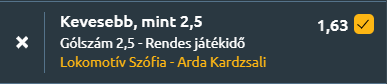 - Bulgáriába megyünk egy meccs erejéig, A két csapat mutatói többnyire visszafogott gólszámú mérkőzésekre utalnak. A Lokomotiv Sofia 1929 legutóbb 0–1-re győzött, szezonban pedig mindössze 1 lőtt és 0.94 kapott gólt átlagol, ami kifejezetten zárt játékot jelez. Az Arda ugyan 3–0-s sikerrel érkezik, ám idényátlagai, 1.13 rúgott és 1.19 kapott gól, szintén nem indokolnak kimagasló góltermelést. A felek egymás ellen az utóbbi öt mérkőzésen többnyire visszafogott eredményeket produkáltak, hiszen a Lokomotiv Sofia 1929 0.2-es, az Arda 2.0-s átlaggal zárt, és a legutóbbi találkozójuk is csupán 1–1-re végződött. Mindkét fél általánosan kevés gólt szerez a szezonban, sőt a felek egymás elleni találkozói sem hoztak gólzáport, így ma is erre van nagyobb esély.