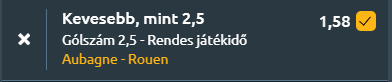 - És még egy Rouen, de ezúttal vendégcsapat, még mindig a francia háromban. A találkozó előtt Aubagne 5. helyen áll, míg Rouen vezeti a tabellát, és a győzelmi esélyek is inkább a vendégek felé billennek. A két csapat formája eltérő, Aubagne legutóbb 2–4-re verte Orléanst, míg Rouen 0–0-s döntetlent játszott Concarneau ellen. A közös múlt is érdekes, hiszen az utolsó két egymás elleni meccset Aubagne nyerte, köztük a legutóbbit idegenben 0–1-re, és a gólátlagok is alacsonyak voltak. formamutatók szintén szűk meccset jeleznek előre: Aubagne az utóbbi öt találkozón 1.8-at rúgott és 1.4-et kapott, Rouen pedig 1.4-es gólátlag mellett csupán 0.4 gólt engedett. Mindezek alapján jól látható, miért várható 2,5 gól alatti mérkőzés: a Rouen stabil, kemény védekezése, az egymás elleni találkozók alacsony góltermése, valamint a statisztikai valószínűségek egyaránt egy visszafogott, taktikus, kevés gólt hozó összecsapást vetítenek előre.
