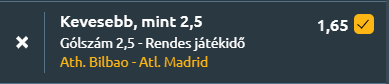 - Komoly rangadó lesz ez, védekezésben nagyon erős csapatok részvételével. Mindkét gárda vereség után van, így nem fognak fejjel rohanni a falnak! Az Athletic szezonja nem olyan erős, hiszen 15 bajnoki után mindössze 20 ponttal a nyolcadik helyen áll, és 11 pontos hátrányban van a negyedik Atletico mögött. A Real Madrid elleni 3–0-s hazai vereség tovább mélyítette a gondokat, miközben a Bajnokok Ligájában is mindössze négy pontot gyűjtöttek, és a sérülések sem könnyítik Ernesto Valverde helyzetét. A baszkok ugyan 13 pontot szereztek nyolc hazai bajnokin, ám az Atletico idegenben is veszélyes lehet, még ha csak két győzelem és nyolc rúgott gól szerepel is a nevük mellett hét vendég fellépésen. Ez a nyolc idegenben rúgott gól jól mutatja Diego Simeone együttesének óvatosságát, ha elhagyják a fővárost. A gárda a Barcelona elleni 3–1-es vereséggel zárta le hétmeccses győzelmi sorozatát, de továbbra is a dobogó közelében áll. Az összkép alapján nem várható tehát sok gól, hiszen két visszafogott formában lévő csapat, kevésbé hatékony támadójáték és több, óvatosságra intő körülmény találkozik. A vendégek idegenbeli góltermése szerény, Athletic pedig a Real elleni zakót követően bizonyára sokkal zártabb, biztonságosabb futballt választ. Mindez együtt azt vetíti előre, hogy jó eséllyel 2,5 gól alatt marad a góltermés.