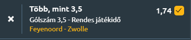 - A Feyenoord és a PEC Zwolle mai összecsapása fontos állomásnak ígérkezik a hazaiak számára, akik továbbra is PSV üldözésében reménykednek, míg a vendégek a kiesőzónától igyekeznek eltávolodni. A Feyenoord négy egymást követő vereség után a Telstar ellen nyerni tudott és a csapat így is üldözőpozícióban maradt. Robin van Persie együttese azonban már hat mérkőzés óta képtelen volt kapott gól nélkül lehozni egy találkozót, ezért a védelem stabilizálása kiemelten fontos feladattá vált, miközben a támadójáték nem éri el a PSV szintjét. A Zwolle idegenben gyengébb, hiszen a szezon első vendégsikere óta hat idegenbeli bajnokit nem tudott megnyerni, ráadásul egy 8–2-es vereség is szerepel a sorban. A legutóbbi 3–1-es kupabúcsú után már csak a bajnokságra koncentrálhatnak. A rotterdamiak 12 egymást követő győzelme ebben a párosításban egyértelműen a hazai fölényt mutatja. A két csapat formája, Feyenoord védekezési bizonytalansága és Zwolle gyakori korai góljai együttesen erősen abba az irányba mutatnak, hogy több mint 3,5 gól is születhet ezen a mérkőzésen.