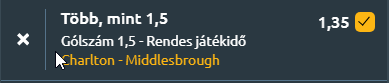 - A Charlton három mérkőzésen 11 kapott góllal érkezik a találkozóra, miután a Coventry elleni 3–1-es vereség előtt és után is szenvedtek, és bár Nathan Jones csapatát nem a listavezető elleni eredmények alapján kell megítélni, a támadások hatékonysága így is gyengécske, hét meccsen mindössze öt gólt szereztek, és egyszer sem jutottak kettő fölé. A gyenge sorozat folytatódása esetén ötödik vereségük is becsúszhat, miközben legutóbbi hazai fellépésükön 5–1-re kaptak ki, noha az azt megelőző öt hazai találkozón három győzelmet és két döntetlent értek el. A Middlesbrough remek formát mutatott a Hull elleni 4–1-es győzelemmel, három meccsen nyolc gólt termelve, miután előtte hét mérkőzésen csak négyszer talált be. Ugyanakkor védekezésük sem hibátlan, hiszen három összecsapáson négy gólt engedtek, és idegenben sem mindig magabiztosak, tízből négy győzelemmel és két vereséggel, de legutóbbi nyolc vendégmeccsükből csak kettőt nyertek meg. A Charlton súlyos védekezési gondjai és a Middlesbrough három meccsen szerzett nyolc találata egyértelműen arra utal, hogy a találkozó könnyen átlépheti az 1,5 gólos határt!