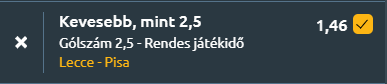 - Olaszországba utazunk, ahol a Serie A pénteki játéknapján a kiesés elől menekülő Lecce a Pisa ellen lép pályára és mindkét együttes a pontokért küzd, hogy elkerülje a kiesést. A Lecce a 17. helyen áll, az előző fordulóban 2–0-ra kikapott a Cremonese ellen, az idei évben a 34 bajnoki mérkőzésük közel felén nem tudtak gólt szerezni, a támadósor formája és magabiztossága ingadozó. Otthon viszont az utóbbi öt mérkőzésükből csak egyet veszítettek el, így a Via del Mare-ban nehezen verhetők. A Pisa a legutóbbi két hazai meccsét elveszítette, legutóbb 1–0-ra kapott ki a Parmától, az utolsó három idegenbeli mérkőzésén azonban döntetlent játszott AC Milannal, Torinóval és Sassuolóval. Mindkét csapat góltermése alacsony, a szezonban alig több mint tíz gólt jegyeznek. A két fél korlátozott támadóképessége és a szezonbeli alacsony gólszámok alapján a pénteki mérkőzés várhatóan kevés gólt hoz, így a kevesebb, mint 2,5 csapattól gól valószínűbb eredmény.