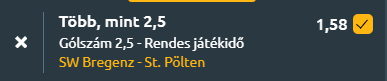 - Maradunk még egy meccs erejéig az osztrák kettőben, ahol az SW Bregenz a listavezető St. Pölten csapatát fogadja az ImmoAgentur Stadionban, ahol a statisztikák szerint gólgazdag meccsre van kilátás. A Schwarz-Weiss Bregenz jelenleg a 16. helyen áll, előző fordulójában 3-1-es vereséget szenvedett a Rapid Wien II ellen. A szezonban eddig 1 győzelmet arattak, 8-szor kaptak ki és 7 döntetlent játszottak, mérkőzésenként átlagosan 1,13 gólt szerezve és 1,81 gólt kapva. Az utóbbi öt meccsükön 1 győzelmet, 3 vereséget és 1 döntetlent értek el, átlagosan 1,4 gólt szerezve és 1,6-ot kapva. A St. Pölten a tabella élén áll, előző fordulójában 2-0-ra legyőzte az Austria Wien II-t. A szezonban 11 győzelmet, 3 vereséget és 2 döntetlent jegyeznek, mérkőzésenként átlagosan 1,94 gólt szerezve és 1-et kapva. Az utóbbi öt meccsükön 2 győzelmet, 2 vereséget és 1 döntetlent értek el, átlagosan 1,2 gólt szerezve és 1,2-öt kapva. Az utóbbi öt egymás elleni mérkőzésükön a Bregenz egyszer, a St. Pölten háromszor győzött, egyszer döntetlen született; a Bregenz átlagosan 1,4, a St. Pölten 2,6 gólt szerzett. Az egymás elleni statisztikák és a csapatok gólátlagai alapján a pénteki találkozón várhatóan több mint 2,5 gól születik.