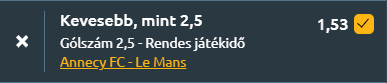 - Két meccs erejéig Franciaországba utazunk, ahol az alsóbb szinteken nézünk szét. A Ligue 2. mai játéknapján az FC Annecy hazai pályán fogadja a Le Mans FC-t. A Ligue 2 mindig is a többségében a védekezésről és a kevés gólos meccsekről volt híres. Az FC Annecy az utóbbi hetekben jelentősen javított formáján, legutóbbi győzelmei SC Bastia (1-0) és EA Guingamp (0-3) ellen a tabella 10. helyére repítették őket. A szezon során mérkőzésenként átlagosan 1,3 gólt szereznek és 1,0-t kapnak, hazai pályán különösen stabilak, az elmúlt 15 hazai félidőjükön nem veszítettek. A Le Mans FC a Ligue 2 egyik kellemes meglepetése, jelenleg az 5. helyen áll 7 győzelemmel, 6 döntetlennel és 3 vereséggel, szintén mérkőzésenként 1,3 gólt szerezve és 1,0-t kapva. Az elmúlt 11 bajnoki meccsük veretlen sorozatot mutat, a legutóbbi 1-0-s sikerük Amiens ellen is bizonyítja védelmi stabilitásukat és a szoros mérkőzések hatékony kezelését. Mindkét csapat taktikailag rendezett, nehezen feltörhető, és az elmúlt hetekben kevesebb mint két gólt átlagoltak meccsenként. Az adatok és a jelenlegi forma alapján a mérkőzés várhatóan kevesebb, mint 2,5 gólt hoz, így egy szoros, taktikus és alacsony gólszámú találkozóra lehet számítani, ahol a csapatok a stabil védekezésre és a precíz átmenetekre építve igyekeznek pontot szerezni.