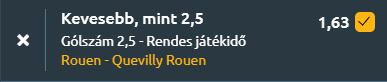 - A Rouen-i városi derbi következik a harmadosztályból! Igazi rangadó lesz ez, harcos-, védekezésre alapuló játék, indulat és csontzene várható. A Rouen az idényben stabil formát mutat, jelenleg a 2. helyen áll a bajnokságban 8 győzelemmel, 1 vereséggel és 5 döntetlennel. Mérkőzésenként átlagosan 1,5 gólt szereznek és csupán 0,64-et kapnak, az utóbbi öt meccsen 2 győzelmet arattak és 3 döntetlent játszottak, átlagosan 1,4 gólt szerezve és 0,6-ot kapva. Quevilly Rouen az idény során nehézségekkel küzd, a 15. helyen áll 2 győzelemmel, 9 vereséggel és 3 döntetlennel, az utóbbi öt meccsen győzelem nélkül maradtak, átlagosan 0,6 gólt szerezve és 2,0-t kapva. A két csapat korábbi öt egymás elleni mérkőzése alapján Rouen 2-szer nyert, Quevilly Rouen szintén 2 győzelmet aratott, és egyszer döntetleneztek. A városi derbi tehát taktikus és szoros összecsapásnak ígérkezik, ahol a Rouen stabil védelme és Quevilly Rouen gyenge támadójátéka döntő tényező lehet. Nem várható két gólnál több ezen a meccsen!