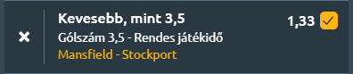 - A League One alsóházában rendeznek rangadót, ahol a kiesés elől menekülő Mansfield Town a rossz formában lévő Stockport County csapatát fogadja. Kemény harcos meccs várható, hiszen mindkét csapat számára kellenek a pontok a tabella alsó felében. A Mansfield az utolsó öt bajnokiján nyeretlen maradt, de a Wimbledon elleni 0-0-val megtörte a négymeccses vereségi sorozatát, és a szezonban mindössze negyedik kapott gól nélküli mérkőzését jegyezte. Nigel Clough vezetőedző bízik benne, hogy csapata október óta először győzni tud Stockport ellen, különösen, hogy a Stags a Stockport elleni utolsó tíz találkozóját veretlenül zárta minden sorozatban. Nehezíti a helyzetet a sok sérült. A Stockport a 6. helyen áll, de nincs jó formában, legutóbbi 3-1-es vereséget szenvedtek el a Stevenage ellen. A csapat a liga legjobb idegenbeli mutatójával rendelkezik, és reméli, hogy kihasználhatja Mansfield gyengeségeit szombaton. Mindezek alapján szoros, küzdelmes meccs várható, maximum három góllal!