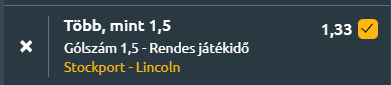 - Még mindig a League One mai játéknapján a Stockport County a Lincoln City-t látja vendégül. A Stockport County a múlt szezonban a playoffban maradt alul a feljutásért folytatott küzdelemben, és most is a másodosztályba jutás egyik esélyeseként lép pályára. Dave Challinor csapata eddig 20 mérkőzésen 35 pontot szerzett, és az egyik legeredményesebb támadósorral rendelkezik a ligában, bár az utóbbi hónapokban formájuk megtorpant, november és december folyamán mindössze két győzelmet arattak hat bajnokin. Legutóbb a Mansfield Town ellen 2-1-re nyertek Ryan Sweeney öngóljának és Jack Diamond fejeseinek köszönhetően. A Lincoln City ugyanakkor remek formában érkezik a találkozóra, miután legutóbb 2-1-re győzött a Cardiff City ellen. . Michael Skubala együttese négy mérkőzés óta veretlen a bajnokságban, nyolc gólt szerezve, melyeknél Reeco Hackett négyszer játékkapcsolatban volt. A csapatok remek formája és támadósora alapján a mérkőzésen több, mint 1,5 gól várható!