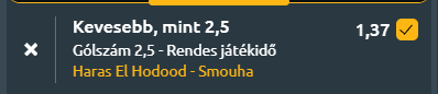 - Az Egyiptomi Kupa 2025/26-os idényének mai játéknapján a Haras El Hoodod hazai körülmények között fogadja a Smouha csapatát, Alexandriában. A Haras El Hodood az idényben még nem aratott győzelmet a kupában, egy döntetlent jegyez. Az elmúlt 5 mérkőzésükön 0 győzelem, 2 vereség és 3 döntetlen szerepel. Legutóbbi találkozójukon 1–1-es döntetlent játszottak az Ismaily ellen. A hazaiak gólképessége tehát igen visszafogott, ami a mérkőzés alacsony gólszámát vetíti előre, de lássuk a másik gárda számait is! A Smouha az idényben 1 győzelmet aratott, 3 gólt átlagosan szerez mérkőzésenként és 1 gólt kap. Az elmúlt 5 mérkőzésükön 2 győzelem, 1 vereség és 2 döntetlen szerepel. Legutóbbi meccsükön 3–1-re győztek a Ghazl El Mehalla ellen, a Haras El Hodood elleni legutóbbi találkozójukon 1–0-ra diadalmaskodtak. Az előző meccsek alapján a vendégek gólerőssége látszik, de a hazaiak pályaelőnye és erős védekezése ellensúlyozza ezt. Mindezek alapján a találkozón kevesebb mint 2,5 gól várható.
