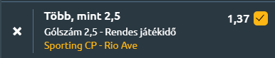 - Szintén a portugál bajnokság utolsó játéknapján a Sporting Lisszabon hazai pályán fogadja a Rio Ave csapatát, ahol a hazaiak számára a győzelem alapelvárás, miközben a korábbi találkozók alapján gólgazdag mérkőzésre lehet számítani. A Sporting egy igazi gólszerző gépezet! Az előző fordulóban magabiztos 4-1-es győzelmet aratott Vitoria Guimaraes ellen, ezzel 12 győzelemmel áll az első 15 bajnoki meccsükön, mindössze három alkalommal veszítve vagy játszva döntetlent a topcsapatok ellen. A hazai pályán mutatott formájuk különösen meggyőző, az utolsó hét hazai meccsükből mindet megnyerték, és az elmúlt hat győzelmet legalább két gólos különbséggel aratták, összesen 21 gólt szerezve és csak egyet kapva. A Rio Ave az utóbbi időszakban négy idegenbeli mérkőzésen veretlen maradt, de ezek közül három a legutóbbi hat meccsükből mindössze egy győzelmet hozott, miközben az utóbbi négy találkozójuk Sporting ellen legalább kétgólos vereséggel zárult. Összesítve tehát, a két csapat közti minőségi különbség, a korábbi összecsapások gólerős jellege és a Sporting kiváló hazai formája alapján várható, hogy a meccsen több mint 2,5 gól születik