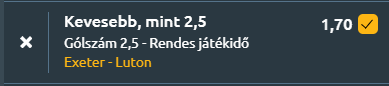 - 2026-os győzelemre készül az Exeter City, amely a javuló formát mutató Luton Townt fogadja a St James' Parkban. Az Exeter City eddigi szezonja nehéznek bizonyult, a legtöbb időt a League One kiesés elkerüléséért küzdve töltötte, és jelenleg 20. helyen áll 26 ponttal, 8 győzelemmel, 2 döntetlennel és 12 vereséggel. Az elmúlt hetekben azonban három győzelemük az utolsó öt bajnoki mérkőzésükön reményt ad a biztos bennmaradásra, miközben védelmük az egyik legerősebb a ligában. A Luton Town Jack Wilshere irányítása alatt javult formát mutat, a 15 mérkőzésből 7 győzelmet, 5 döntetlent és 3 vereséget szereztek, így a Hatters a 2025-ös év végén a 8. helyen áll. Az Exeter stabil védelme ellen a Lutonnak megvan a támadóképessége a gól megszerzéséhez, de a decemberi EFL Trophy-mérkőzésen 4-0-ra győztek, ami az előző találkozótól eltérő, szoros és kiegyensúlyozott összecsapást vetít előre. A mérkőzés valószínűleg kevés helyzetet és 2,5 gólnál kevesebbet hoz majd!
