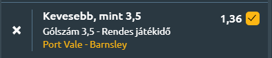- Kiesési rangadóra kerül sor a League One-ban, ahol az utolsó helyen álló Port Vale a Barnsleyt fogadja, mindkét csapat számára létfontosságú pontokért, ez pedig óvatos játékfelfogást feltételez. A Port Vale az elmúlt időszakban komoly hullámvölgyön ment keresztül, hiszen a Huddersfield elleni 5–0-s vereséget követően menesztették Darren Moore-t, majd Jamie Smith irányításával előbb 1–0-ra kikaptak a Bradfordtól, mielőtt megszakították 12 meccses nyeretlenségi sorozatukat a tíz emberrel játszó Blackpool elleni 5–1-es győzelemmel. Ez a siker ugyan önbizalmat adhat, de összességében továbbra is a tabella alján állnak, kilenc pontra a bennmaradástól és a Port Vale egész szezonját pontatlanság és eredménytelenség jellemzi. A Barnsley sincs jobb formában, legutóbbi négy bajnokiján nyeretlen maradt, legutóbb a Wigan ellen játszott 1–1-es döntetlent, ahol gyenge első félidőt produkált, majd hiába egyenlített, nem tudta megszerezni a győzelmet, ráadásul csapatkapitányát is elveszítette kiállítás miatt. Mindkét oldalon jelen van a nyomás és a bizonytalanság, ami inkább óvatos, kockázatkerülő játékot vetít előre, aminek a következtében nem várható több, mint 3,5 gól a mérkőzésen!