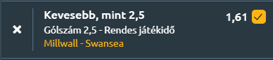 - Szoros ligabajnoki találkozó várható ma, ahol a Millwall hazai pályán a Swansea Cityt fogadja. A Millwall az utóbbi időszakban gyenge formában van, az elmúlt hat bajnoki mérkőzésükből mindössze egyszer nyertek, legutóbb a Bristol Cityt verték 2-1-re a The Denben. Újév napján gól nélküli döntetlent játszottak a Southamptonnal, ezzel a csapat a top hatból a hetedik helyre csúszott vissza, de az eddigi kilenc kapott gól nélküli mérkőzésük mutatja, hogy a védelem nagyon erős! Hazai pályán hat ilyen találkozót produkáltak a 13-ból, így reális esélyük van feltartóztatni a Swansea-t. A vendégcsapatot Vitor Matos irányítása alatt javuló forma jellemzi, öt győzelmet arattak az elmúlt kilenc bajnoki meccsükből, köztük három 1-0-s sikert a legutóbbi négy mérkőzésükön, amivel nyolc ponttal távolodtak el a kieséstől és közelebb kerültek a rájátszáshoz. Idegenben viszont kifejezetten gyengék, aze redmény öt vereség az utolsó hat idegenbeli meccsükből, ami kérdésessé teszi, hogy képesek lesznek gólt szerezni a The Denben. Mindkét csapat a stabil védekezésre épít és az elmúlt mérkőzéseken kevés gólt kaptak vagy szereztek, így a találkozó valószínűleg kevesebb, mint 2,5 gólos lesz!