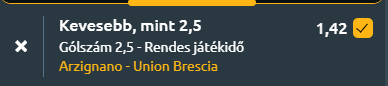 - Gólszámos körképünket a Serie C-ben zárjuk három meccsel! Az elsőn az Union ArzignanoChiampo hazai pályán fogadja az élmezőnyhöz tartozó Union Bresciát, egy olyan találkozón, ahol a számok inkább visszafogott gólszámot vetítenek előre. Az Union ArzignanoChiampo jelenleg a 10. helyen áll, eddigi mérlege hat győzelem, hét vereség és hat döntetlen, miközben a szezonban mérkőzésenként átlagosan 1,47 gólt szerzett és 1,53-at kapott. Legutóbb a Pro Vercelli ellen aratott 5–0-s győzelmet, az elmúlt öt mérkőzésén pedig veretlen maradt. Az Union Brescia a tabella harmadik helyét foglalja el, tíz győzelemmel, három vereséggel és hat döntetlennel, miközben a szezon során 1,37 gólt szerzett és mindössze 0,53-at kapott mérkőzésenként. A legutóbbi fordulóban 2–0-ra nyert az Inter U23 ellen. Az alacsony kapott gólátlaggal rendelkező Union Brescia mutatói és a hazai csapat óvatos stílusa alapján ez a mérkőzés inkább szoros, kevés gólos összecsapásnak ígérkezik, ahol a statisztikák szerint reálisabb a 2,5 gól alatti forgatókönyv.
