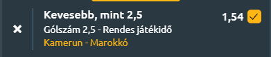 - Az Afrika-kupa negyeddöntőjében két veretlen csapat, Kamerun és a házigazda Marokkó csap össze, egy várhatóan kiegyenlített és feszült mérkőzésen. Kamerun a Dél-Afrika elleni 2–1-es győzelemmel jutott tovább, ám a tornán eddig inkább az eredményességük emelhető ki, mint a meggyőző játékuk és ez várható is volt, a bukik nem jegyezték őket a kiemelkedő esélyesek között. David Pagou szövetségi kapitány is kiemelte, hogy a sikerük kulcsa a mentális erő és a csapategység volt, nem pedig a parádés játék. Marokkó a nyolcaddöntőben Tanzániát 1–0-ra búcsúztatta, Walid Regragui szerint a csapat különösen az első félidőben nem találta meg a jó formát, sok technikai hibával és kihagyott helyzettel játszott. A torna során a marokkóiak többször is alacsony gólszámú meccseket játszottak. Védelmük stabilitását mutatja, hogy négy ANK-találkozón mindössze egy gólt kaptak. Kamerun mérkőzéseinek fele szintén 2,5 gól alatt maradt a tornán, ráadásul a két válogatott egymás elleni múltja is jellemzően szűk eredményeket hozott. Mindezek alapján minden adott ahhoz, hogy a találkozó 2,5 gól alatt maradjon.