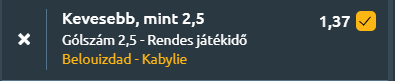 - Az algériai első osztályban, a 2. helyen álló CR Belouizdad és a középmezőnyhöz tartozó JS Kabylie csap össze egy olyan mérkőzésen, ahol a számok alapján inkább a kontrollált játék és a kevés gól tűnik valószínűnek. A CR Belouizdad stabil idényt fut, 14 bajnokijából hatszor nyert, hatszor döntetlent játszott és mindössze kétszer kapott ki, miközben meccsenként átlagosan 1,43 gólt szerez és 0,93-at kap. Az utóbbi öt találkozón veretlen maradt, négy győzelem és egy döntetlen mellett, ugyanakkor a szezon egészét tekintve a védekezés kiegyensúlyozottsága meghatározó. A JS Kabylie a nyolcadik helyről érkezik, mérlege kiegyenlítettebb, öt győzelem, öt döntetlen és négy vereség, támadásban pedig visszafogottabb számokat mutat, 1,14 rúgott és 1 kapott gól meccsenkénti átlaggal. A legutóbbi öt mérkőzésükön mindössze egy győzelmet arattak. A két csapat egymás elleni találkozóin is mérsékelt góltermés rajzolódik ki, az elmúlt öt párharc során a Belouizdad 1,4-es, míg a Kabylie 0,8-as gólátlagot hozott, és az esélyszámítások szerint is nagyobb a valószínűsége annak, hogy legalább az egyik csapat nem szerez gólt, illetve hogy a mérkőzés 2,5 gól alatt marad.