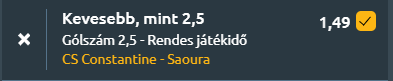 - Szintén az algériai első osztályban, Constantine-ben csap össze a CS Constantine és a JS Saoura csapata. A CS Constantine a tabella 10. helyéről várja az összecsapást, mérlege öt győzelem, öt vereség és négy döntetlen, miközben meccsenként átlagosan 1,07 gólt szerez és 0,93-at kap, ami kiegyensúlyozott, visszafogott játékra utal. Az elmúlt öt mérkőzésükön is elsősorban a stabil védekezés dominált, hiszen mindössze 0,4 kapott gólos átlagot produkáltak, legutóbb pedig 1–0-ra kaptak ki az MC Algertől. A JS Saoura a hatodik helyről érkezik, szezonbeli mutatói szerint 1,36 gólt szerez és ugyanennyit kap mérkőzésenként, az elmúlt öt találkozón négy győzelmet arattak, de ezek során is csak 1,6-os gólszerzési átlagot hoztak. A két csapat egymás elleni mérlege szoros párharcokat jelez, az utóbbi öt találkozón egyik fél sem tudott egyértelmű fölényt kialakítani, miközben az esélyszámítások szerint is nagyobb a valószínűsége annak, hogy legalább az egyik csapat nem szerez gólt, és a 2,5 gól alatti kimenetel is magas arányban szerepel! A szezonbeli gólátlagok, a CS Constantine utóbbi mérkőzéseinek alacsony kapott gólszáma, valamint a statisztikai valószínűségek alapján ez a Ligue 1-es találkozó jó eséllyel 2,5 gól alatt marad.