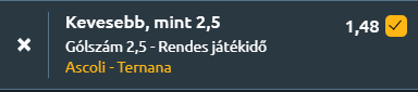 - Ma este a Del Duca Stadionban az élmezőny közelében álló Ascoli és a jó formában érkező Ternana csap össze a Serie C Girone B egyik legkiegyensúlyozottabbnak ígérkező mérkőzésén. Az Ascoli a Pianese elleni 4–2-es vereség után lép pályára, ám továbbra is a tabella harmadik helyét foglalja el, kilenc győzelemmel, hét döntetlennel és három vereséggel, miközben meccsenként átlagosan 1,5 gólt szerez és mindössze 0,6-ot kap. Hazai pályán kifejezetten stabil, az elmúlt 15 otthoni mérkőzésen nem volt hátrányban félidőben, ami kontrollált kezdéseket jelez, ráadásul a legutóbbi 13 hazai találkozóból négyen gól sem született az első félidőben. A Ternana ezzel szemben lendületben van, a Livorno elleni 2–1-es győzelem után az elmúlt öt találkozóján három győzelmet, egy döntetlent és egy vereséget jegyez, szezonbeli átlaga pedig 1,2 lőtt és 0,9 kapott gól. Idegenben különösen nehéz legyőzni őket, hiszen hat vendégmeccs óta veretlenek, és ezen találkozók közül több is szoros, alacsony gólszámú kimenetelt hozott. Az Ascoli hazai stabilitása, a Ternana fegyelmezett idegenbeli szereplése és a gólátlagok alapján egy szoros, taktikai csata várható, ahol jó eséllyel kevesebb mint 2,5 gól születik.