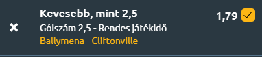 - Észak-Írországban folytatjuk, ahol a Premiershipben a Ballymena United és a Cliftonville csap össze a The Showgrounds stadionban. A tabella középső régiójához tartozó csapatok párharca kiegyenlített, kevés gólt ígérő találkozót vetít előre. Nézzük is a számokat! A Ballymena United a legutóbbi fordulóban 2–0-s vereséget szenvedett a Bangor ellen, és jelenleg a bajnokság 9. helyén áll. Az idény során hét győzelem, tizenkét vereség és három döntetlen szerepel a mérlegén, meccsenként átlagosan 1,18 gólt szerezve és 1,5-öt kapva. Az elmúlt öt találkozón visszafogott támadójáték jellemezte, mindössze 0,8 gólos átlaggal, miközben 1,2 gólt engedélyezett ellenfeleinek. A Cliftonville legutóbb gól nélküli döntetlent játszott a Larne ellen, és a hatodik helyről várja az összecsapást. A szezonban nyolc győzelmet, hat vereséget és hat döntetlent jegyzett, 1,4 rúgott és 1,2 kapott gólos átlaggal. A közelmúltban három döntetlen is szerepel az eredménysorában, az utóbbi öt mérkőzésén 1,8 gólt szerzett és 1,4-et kapott. A kiegyenlített párharcban jó eséllyel kevesebb, mint 2,5 gól várható.
