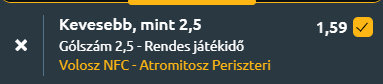 - Maradunk a Mediterrán környezetben, de ez már Hellász! Kiegyenlített esélyekkel, visszafogott támadójátékkal és védekezésorientált játékkal indul a voloszi találkozó, ahol a középmezőnyben álló Volosz NFC a tabella alsó részéből érkező Atromitoszt fogadja a Super League 19. fordulójában. A statisztikák kiegyenlített, gólszegény mérkőzést sejtetnek. Lássuk a számokat! A Volosz NFC a hatodik helyről várja az összecsapást, szezonbeli mérlege 8 győzelem, 7 vereség és 1 döntetlen, miközben mérkőzésenként 1,19 gólt szerez és 1,31-et kap, az elmúlt öt fordulóban pedig 2 győzelem, 2 vereség és 1 döntetlen mellett 1,0 lőtt és 1,2 kapott gól az átlaga, legutóbb pedig 3–1-re kapott ki a Levadiakosztól. Az Atromitosz a 12. pozíciót foglalja el, eddig 3 győzelmet, 9 vereséget és 4 döntetlent jegyzett, támadásban 0,88-as, védekezésben 1,38-as gólátlaggal, míg az elmúlt öt meccsén mindössze 0,6 gólt szerzett meccsenként, és 1,4-et kapott, legutóbb pedig 0–2-re maradt alul az Olympiakosz ellen. A két csapat legutóbbi öt egymás elleni találkozóján 2–2 győzelem és 1 döntetlen született, mindkét fél 1,2 gólos átlaggal, a legfrissebb párharcot pedig a Volosz nyerte idegenben 1–0-ra, szintén egy rendkívül harcos, kevés gólt hozó mérkőzésen. A mérsékelt gólátlagok, az Atromitosz gyenge támadóhatékonysága, a kiegyenlített egymás elleni mérleg összességében visszafogott találkozóra enged következtetni, ahol nem várható több, mint 2,5 gól!