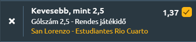 - Négy meccs következik a Gauchók földjéről! A Liga Profesional de Fútbol mai játéknapján a San Lorenzo az Estudiantes de Río Cuartót fogadja hazai környezetben, ahol a hazaiak a gólcsend megtörésére, a vendégek pedig első idénybeli sikerük megszerzésére készülnek. A San Lorenzo a tabella 9. helyén áll két győzelemmel, egy döntetlennel és két vereséggel, legutóbb gól nélküli döntetlent játszott az Unión Santa Fe ellen, ami tovább nyújtotta alacsony gólszámú sorozatát. A csapat meccsenként átlagosan 0,8 gólt szerez és ugyanennyit kap, ami kiegyensúlyozott, de óvatos játékot jelez. A gárda védekezése a liga egyik legstabilabbja, az utóbbi 36 mérkőzéséből 35-ön, a bajnokságban pedig 33-ból 32-n 3,5 gól alatt maradt az össztermés. Az Estudiantes de Río Cuarto gyengén kezdett, a 15. helyen áll egy döntetlennel és négy vereséggel, öt forduló alatt mindössze egy gólt szerzett és kilencet kapott. Legutóbb 4–0-ra kapott ki az Atlético Tucumántól, ami kiemelte védekezési sebezhetőségét és támadóerejének hiányát. Az utóbbi öt mérkőzésén átlagban 0,2 gólt szerzett és 1,8-at kapott, meccsei pedig rendszerint szűk mederben zajlanak: az elmúlt 27 találkozójából 26-on 3,5 gól alatt maradt az eredmény. Azért várható kevesebb, mint 2,5 gól a meccsen, mert mindkét csapat sorozatban alacsony gólszámú találkozókat játszik, a San Lorenzo óvatos és stabil védekezést mutat, míg az Estudiantes támadójátéka eddig kifejezetten gólszegény!