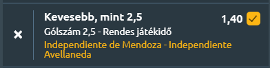 - És még egy meccs Argentínából, az Apertura hatodik fordulójában különleges párharc következik, az azonos nevű, de különböző régiókat képviselő Independiente Rivadavia és CA Independiente csap össze. A mendózai alakulat a múlt héten ugyan 1–0-ra alulmaradt a Belgrano ellen, ezzel megszakadt a négy győzelemből álló hibátlan sorozata, ám így is a B csoport élmezőnyében maradt. Az utóbbi öt mérkőzésen 4 győzelem és 1 vereség a mérlege, meccsenként 1,4 rúgott és 0,8 kapott gólos átlaggal, ami kiegyensúlyozott játékot mutat. Hazai pályán a legutóbbi 11 bajnokiján kivétel nélkül 3,5 gól alatt maradt az össztermés, a legutóbbi tízből négyszer pedig gól nélküli első félidőt hozott a forgatókönyv. A fegyelmezett védekezés stabil alapot ad, miközben a támadójáték épp annyit tesz hozzá, hogy szoros meccseket nyerjen. A vendég CA Independiente szintén második helyen áll saját csoportjában, ráadásul veretlenül érkezik: három döntetlennel rajtolt, majd jött két magabiztos győzelem, mindkettő kapott gól nélkül. Az utóbbi öt meccsen 2 győzelem és 3 döntetlen a mutatója, 1,2-es rúgott és 0,6-os kapott gólátlaggal. A „Rojo” találkozói makacsul szűk mederben zajlanak: zsinórban 22 meccsen, valamint az utóbbi 20 bajnokiján is 3,5 gól alatt maradt az eredmény, idegenben pedig 14 egymást követő alkalommal 1,5 gól alatti félidőt produkált, miközben az utolsó 11 vendégfellépésén sem szaladt el a gólzápor. A két csapat legutóbbi egymás elleni meccse 1–0-ra végződött, az öt legfrissebb találkozón pedig mindkét fél mindössze 0,6 gólos átlagot hozott. Azért várható kevesebb, mint 2,5 gól a meccsen, mert mindkét csapatnak erős a védekezése, mérkőzéseiket tartósan alacsony gólszám jellemzi!