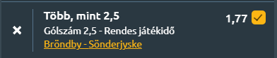 - Ez pedig már Dánia, ahol a Szuperligában A Bröndby hazai környezetben fogadja Sönderjyske csapatát. A Bröndby legutóbb 1–0-ra kikapott a Viborgtól, és nincs jó formában, hiszen az utóbbi öt meccséből egyet sem nyert meg (4 vereség, 1 döntetlen), miközben meccsenként mindössze 0,4 gólt szerzett és 1,4-et kapott. Ezzel szemben a Sönderjyske 2–1-re legyőzte a Silkeborgot, az utóbbi öt találkozójából hármat megnyert, és 1,8-as gólátlagot produkált. A tabellán a Bröndby a harmadik, a Sönderjyske a negyedik helyen áll. Az idényben a hazaiak 1,55 gólt szereznek és 1,1-et kapnak meccsenként, míg a vendégek 1,65-ös rúgott és 1,4-es kapott gólátlaggal érkeznek. Az egymás elleni mérleg kiegyenlített az utóbbi öt meccsen (2–2 győzelem, 1 döntetlen), a legutóbbi találkozót azonban a Sönderjyske nyerte 2–0-ra. Azért várható több mint 2,5 gól a meccsen, mert mindkét csapat idénybeli gólátlaga magas, mind a hazaiak, mind a vendégek jó formában támadnak!