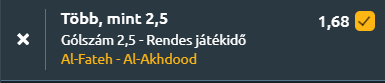 - És még egy meccs erejéig maradunk a sivatagban, az Al Fateh az Al Akhdoud együttesét fogadja Al-Haszában, ahol a számok inkább gólgazdag mérkőzést vetítenek előre. Az Al Fateh legutóbb egy hétgólos meccsen kapott ki 4–3-ra az Al Ettifaq ellen, és az elmúlt öt találkozóján meccsenként átlagban 2,0 gólt kapott. A vendégek szintén egy gólzáporos vereségből érkeznek (2–4 az Al-Qadsiah ellen), ráadásul az utóbbi öt meccsükön átlagosan 2,8 gólt nyeltek be. A szezonban az Al Fateh 1,32 rúgott és 1,86 kapott gólt átlagol, míg az Al Akhdoud 0,82-t szerez, de 2,14-et kap meccsenként. Az egymás elleni mérlegben az Al Fateh 2,0-s, az Al Akhdoud 1,5-ös gólátlagot hoz. Azért várható több mint 2,5 gól a meccsen, mert mindkét csapat legutóbbi találkozói gólzáporosak voltak, a vendégek védelme különösen sok gólt enged!