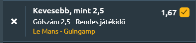 - A Ligue 2 24. fordulójának zárómérkőzésén a negyedik helyen álló Le Mans FC a középmezőnyben tanyázó EA Guingamp együttesét fogadja, ahol a hazaiak a botlás utáni javításban bíznak. meccsenként átlagosan 1,3 gólt szerez és 1,0-t kap. Bár legutóbb 4–2-re kikapott a Montpellier-től, otthon továbbra is erős: kilenc hazai találkozó óta veretlen, és az első félidőkben kifejezetten óvatos futballt játszik, amit jól jelez, hogy az utóbbi 13 hazai mérkőzés mindegyikén 1,5 gól alatt maradt a szünetig született találatok száma. A Guingamp a 11. helyen áll (9 győzelem, 6 döntetlen, 8 vereség), teljesítményét hullámzás jellemzi, és legutóbb 2–1-re kikapott a Saint-Étienne-től. A vendégek ugyan támadásban veszélyesek, de védekezésben sebezhetők, az egymás elleni legutóbbi meccs pedig 3–3-as döntetlennel zárult. Az elmúlt öt találkozón mindkét csapat nagyjából 1,2 gólos átlagot hozott. Azért várható kevesebb mint 2,5 gól a meccsen, mert a Le Mans hazai pályán rendre kontrollált, kevés gólos első félidőket produkál, és mindkét csapat közel azonos, mérsékelt gólátlagot hozott a közelmúltban.