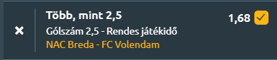 - Kiesési hatpontos a Rat Verlegh Stadionban. A NAC Breda és a Volendam is győzelem után érkezik! A Breda komoly gödörből kapaszkodott ki, hiszen az előző 33 pontból mindössze négyet gyűjtött, ám Clint Leemans 80. perces büntetőjével végrehajtott, Heracles elleni 1–0-s siker véget vetett a 11 meccses nyeretlen sorozatnak, és a csapat feljött a 16. helyre, négy pontra a bennmaradástól. A déliek számára intő jel, hogy a Volendam elleni visszavágón 2–1-re alulmaradtak, és az utóbbi öt egymás elleni tétmeccsből csak egyet nyertek meg. Érdekesség, hogy a Breda szerezte a legkevesebb gólt a bajnokságban a meccsek első negyedórájában, miközben a Volendam ugyanebben az időszakban tíz gólt kapott. A vendégek önbizalma az egekben lehet, kilenc egymást követő vereség után előbb a PEC Zwolle ellen nyertek 2–1-re, majd az idény egyik legnagyobb meglepetéseként 2–1-re legyőzték a PSV-t, így először hoztak össze idénybeli duplázást. Rick Kruys együttese öt pontra eltávolodott a kiesőzónától, ugyanakkor kilenc mérkőzés óta nem tud kapott gól nélkül zárni, és idegenben 2025 áprilisa óta vár az első hibátlan védekezésre. Kiélezett kiesési rangadó körvonalazódik, de a Breda megszerezheti idénybeli első egymást követő bajnoki győzelmét, de van ennél jobb fogadási lehetőség is! Azért várható több, mint 2,5 gól a meccsen, mert a Volendam sorozatban kilenc meccsen nem tudott kapott gól nélkül zárni, és mindkét csapat kulcsfontosságú győzelmek után érkezik, ahol támadásban is jól teljesítettek.