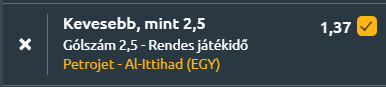 - Ez pedig már a mesebeli Afrika, ott is Egyiptom, ahol kiegyenlített erőviszonyok mellett csap össze a Petrojet és az Al Ittihad a helyi Premier League-ben. A győzelmi esélyek szinte azonosak (32%–33%–35%). A Petrojet legutóbb 1–1-et játszott a Pharco ellen, míg az Al Ittihad 1–0-ra verte a Smouha együttesét. Az előző egymás elleni meccs 0–0 lett, az utolsó öt párharcból a Petrojet kettőt nyert, három döntetlen született. Átlagban a Petrojet 1,2 gólt szerez meccsenként a párharcban, az Al Ittihad 0,6-ot. A tabellán a Petrojet 11., riválisa 16. A szezonban a Petrojet meccsenként 1,06 gólt lő és 1,18-at kap, az Al Ittihad mutatója 0,76 rúgott és 1,29 kapott gól. Az utóbbi öt meccsen a Petrojet négy döntetlent játszott, az Al Ittihad viszont stabilabb védekezéssel csak 0,6 gólt engedett meccsenként. Azért várható kevesebb, mint 2,5 gól a meccsen, mert az egymás elleni találkozók többsége döntetlen és gól szegény volt, alacsony a csapatok gólátlaga, és a statisztika szerint is 67% az esély az under kimenetelre, ez pedig jó esély!