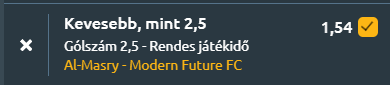 - Utolsó egyiptomi összecsapáson járunk, ahol az Al Masry a Modern Sport FC csapatát fogadja a New Suez Stadionban. Az egymás elleni mérleg kiegyenlített, bár az Al Masry az utóbbi öt párharcból kettőt megnyert. A szezonban az Al Masry meccsenként 1,5 gólt szerez és 1-et kap, míg a Modern Sport FC átlaga 1,06–1,06. A közelmúlt formája döntetlenekben gazdag: mindkét csapat az utóbbi öt meccséből négyet ikszelt. Az alacsonyabb gólszám gyakori, hiszen az elmúlt tíz találkozóból az Al Masry hétszer, a Modern Sport FC nyolcszor maradt 2,5 gól alatt. Itt is szoros, visszafogott tempójú mérkőzés várható, kevesebb, mint 2,5 góllal.