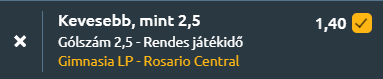 - Repülünk Dél-Amerikába, a gaucsók földjére, ahol a Liga Profesional hetedik fordulójában a Gimnasia y Esgrima La Plata a Rosario Central együttesét fogadja. A felsőházban álló riválisok párharca komoly hatással lehet a szezon eleji helyezkedésre! A Gimnasia 1–0-s idegenbeli győzelemmel érkezik a Gimnasia y Esgrima Mendoza ellen, hazai pályán pedig kilenc megszerezhető pontból hetet gyűjtött. Mérlege 3 győzelem, 1 döntetlen, 2 vereség, gólátlaga 1,0–1,0, amivel a 4. helyen áll. Mérkőzései szinte kivétel nélkül szorosak: az utóbbi 40 találkozóból 38 alkalommal 3,5 gól alatt maradt az össztermés, és 37 esetben a második félidőben legalább az egyik csapat nem talált be. Otthon 20 meccsből 18-szor a szünetben 1,5 gól alatt maradt az állás. A Rosario Central legutóbb 0–1-re kikapott a Talleres Córdoba ellen, bajnoki mérlege 2–2–2, gólátlaga 1,0–0,8, amivel a 6. pozíciót foglalja el. Az ő meccsein is rendre kevés a gól: legutóbbi tíz találkozóján mindig 3,5 gól alatt maradt az eredmény, idegenben pedig 15 bajnokiból négyszer gólt sem szerzett. Az egymás elleni mérleg az utóbbi öt meccsen a Rosario fölényét mutatja, négy győzelemmel. Azért várható kevesebb, mint 2,5 gól a meccsen, mert a Gimnasia hazai pályán is kifejezetten védekezésorientált, zárt meccseket játszik, míg a Rosario Central idegenben visszafogott támadójátékot mutat!
