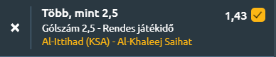 - A szaúdi élvonal 24. fordulójában az Al Ittihad az Al Khaleej ellen próbál visszatérni a győzelmi útra. A címvédő hazaiak két egymást követő 1–1-es döntetlennel érkeznek: az Al Hilal ellen még felcsillant a tavalyi bajnokcsapat harci szelleme, az Al Hazem elleni iksz viszont inkább a csalódást keltő idényt tükrözte, pedig Roger Fernandes a 80. percben még győztesnek tűnő gólt szerzett. Sergio Conceicao együttese ugyan öt meccse veretlen minden sorozatban, de a bajnokságban csak hatodik, és már 17 pont a hátránya az éllovas mögött. Ráadásul a télen Karim Benzema és N’Golo Kanté távozása is érzékenyen érintette a keretet. A vendég Al Khaleej kilenc mérkőzés óta nyeretlen, legutóbb fájdalmas 3–2-es vereséget szenvedett az Al Kholoodtól. Bár a tabellán kilencedik, támadásban hatékony, 42 góljával a liga ötödik legeredményesebb csapata, ugyanakkor védelme sebezhető, már 37 találatot kapott. Az Al Ittihad az utóbbi tíz meccséből nyolcon megszerezte a vezetést, és az egymás elleni 17 találkozón az Al Khaleej még nem nyert. A több mint 2,5 gól mellett szól a vendégek gólérzékeny, de lyukas védekezése, valamint az, hogy mindkét csapat rendszeresen betalál.