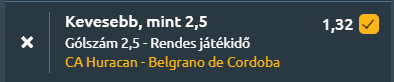 - Továbbra is a szökött náci háborús bűnösök kedvenc országában járunk, ahol a nyolcadik forduló mai játéknapján a hetedik helyezett Huracán a veretlen második Belgranót fogadja a Tomás Adolfo Ducó Stadionban. A Huracán hullámzó hetek után tér vissza otthonába, a Deportivo Riestra elleni 0–0 és az Estudiantes de Río Cuarto elleni 0–2 után csupán egy pontot szerzett a legutóbbi két meccsén, ugyanakkor hazai pályán egymás után verte 1–0-ra a Sarmiento de Junínt és a San Lorenzót. Mérlege 2 győzelem, 3 döntetlen, 2 vereség, meccsenként 0,7 lőtt és 0,9 kapott gól, az utóbbi öt találkozón pedig 0,6–0,6-os átlag mutatja a fegyelmezett, óvatos játékot. Nem véletlen, hogy az utolsó 21 bajnokijából 19-szer 2,5 gól alatt maradt az össztermés, 25-ször 3,5 alatt, és 33 meccsből 32-n legalább az egyik fél gólképtelen maradt, a szünetben 30-ból 29-szer 1,5 gól alatt állt az eredményjelző. A Belgrano ezzel szemben lendületben érkezik, 4 győzelemmel és 3 döntetlennel 15 pontot gyűjtött, legutóbb 3–1-re múlta felül az Atlético Tucumánt. Átlaga 1,3 rúgott és 0,6 kapott gól, az utolsó öt meccsen 1,2–0,4, idegenben pedig eddig mindössze két gólt engedett. Nála is beszédes a trend, 26-ból 25-ször 3,5 gól alatt zárult a bajnoki, vendégként sorozatban 16-szor. Itt pedig azért várható 2,5 gólnál kevesebb, mert mindkét csapat meccseit rendre alacsony gólszám és óvatos első félidő jellemzi.
