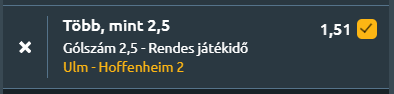- És búcsúzóul még egy német 3-as meccs, a liga alsóházi csatájában az Ulm a Donaustadionban fogadja a Hoffenheim második együttesét. A hazaiak a 18. helyről várják az összecsapást, szezonmérlegük 7 győzelem, 16 vereség és 3 döntetlen, miközben meccsenként 1,31 gólt szereznek és 2-t kapnak. Az utóbbi öt találkozón 1 győzelem, 2 vereség és 2 döntetlen a formájuk, 1,0–1,4-es gólátlaggal. A Hoffenheim II a 13. pozícióban áll, a szezonban 9-szer nyert, 12-szer kikapott és 5 döntetlent játszott, 1,85 lőtt és 1,81 kapott gólos mutatóval. Formájuk ingatag: az elmúlt öt meccsből egyet sem nyertek meg, négyszer vereséget szenvedtek, egyszer döntetlent értek el, miközben 1,2 gólt rúgtak és 2,6-ot kaptak átlagban. A legutóbbi egymás elleni találkozó 1-1-re végződött. A statisztikák szerint mindkét csapat hajlamos gólt kapni, a Hoffenheim II különösen sebezhető hátul, az Ulm pedig szintén kétgólos kapott átlaggal dolgozik a szezonban. Várhatóan lesz legalább három gól a mérkőzésen!